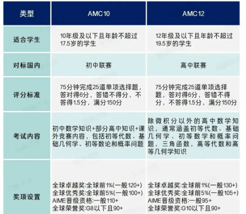 AMC10和AMC12均为美国数学协会(MAA)主办的高含金量数学竞赛在申请海外顶尖名校时备受招生官认可。以下是两者具体区别: