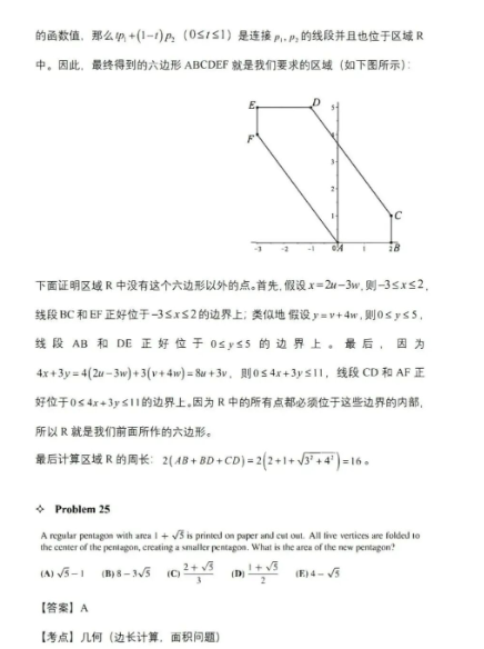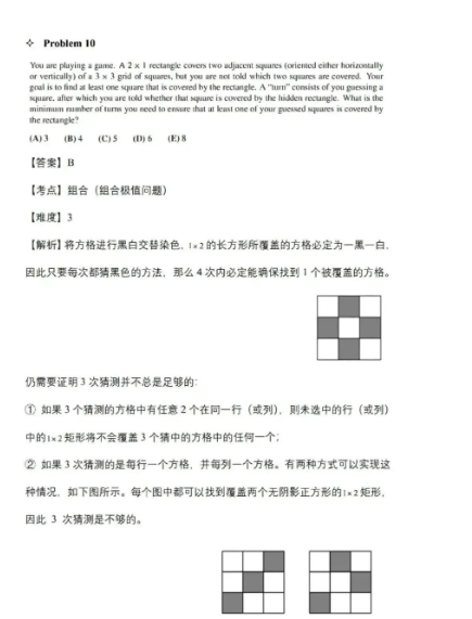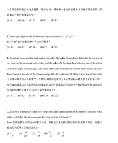 21-25题(高难度):接近AMC12或AIME水平,通常需要创造性思维,如构造特殊例子、逆向推理等,普通学生可能完全无思路。 附AMC10考点总结: 基础较弱(成绩中等或偏下) 建议提前8-12个月开始系统准备。基础较弱的学生需要更多时间填补知识漏洞,逐步提升解题能力。 先从AMC10的基础知识点入手,包括代数、几何、数论和组合数学四大板块。每天花1-2小时学习,重点掌握基础概念和公式。 建议使用入门级教材,如《AMC10基础精讲》,搭配基础题目练习。 初期以基础题为主,逐步过渡到中等难度题目。每周完成1-2套真题,分析错题并整理错题本。遇到不懂的问题及时请教老师或同学,确保每个知识点都能理解透彻。 前6个月以知识点学习为主,后6个月逐渐增加刷题量,后2个月进行模拟考试训练。 基础中等(成绩良好,但竞赛经验不足) 建议提前6-8个月开始集中备考。这类学生有一定数学基础,但需要适应竞赛题的思维模式和难度。 重点突破AMC10的中等难度题目,尤其是代数和几何部分。 可以用《AMC10进阶训练》这类教材,每天学习1.5-2小时,注重解题技巧的培养。 每周完成2-3套真题,重点分析错题和不会做的题目。整理常见题型和解题思路,比如数论中的模运算、组合数学中的计数技巧等。通过反复练习,提高解题速度和准确率。 前3个月以专题突破为主,中间3个月加强综合训练,后2个月进行全真模拟,适应考试节奏。 基础较好(成绩很棒,有一定竞赛经验) 建议提前3-5个月进行针对性备考。这类学生知识储备较足,重点是提升难题的解答能力和时间管理。 直接从中高难度题目入手,尤其是数论和组合数学的难题。 可以使用《AMC10难题解析》等资料,每天学习2小时左右,重点训练思维灵活性和创新解题方法。 每周完成3-4套真题,重点攻克后10题的难题部分。分析历年高分学生的解题思路,学习他们的技巧和方法。可以尝试限时训练,模拟真实考试环境。 前2个月进行难题专项训练,中间2个月加强全卷模拟,后1个月查缺补漏。 附AMC10数学竞赛部分真题展示: